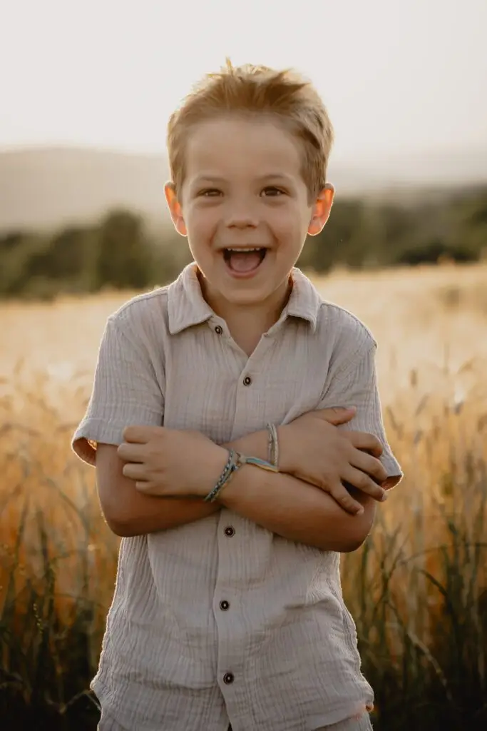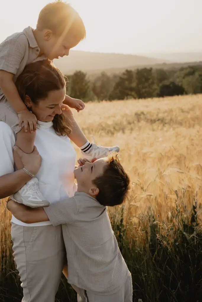 Am liebsten fotografiere ich während der „Goldenen Stunde“ am späten Abend oder am frühen Morgen. Bei den Bildern entsteht in dieser Zeit ein wundervoller warmer und weicher Farbton. Sollte eine starke Sonneneinstrahlung tagsüber vorhanden sein, suchen wir uns am besten ein schattiges Plätzchen z.B. im Wald, da die Sonne auf den Gesichtern harte Schatten wirft, was auf Bildern absolut nicht schön aussieht.